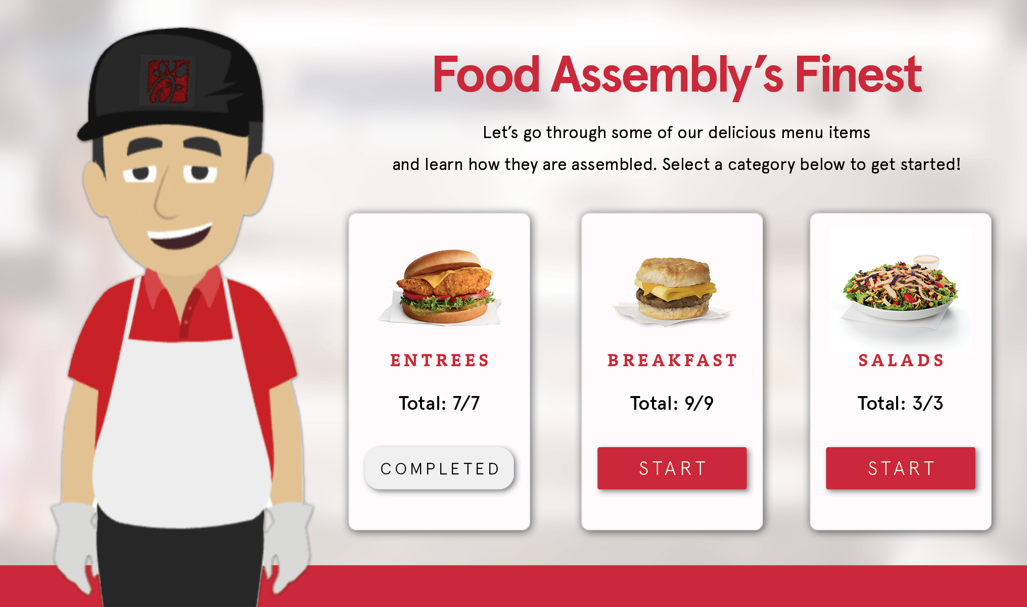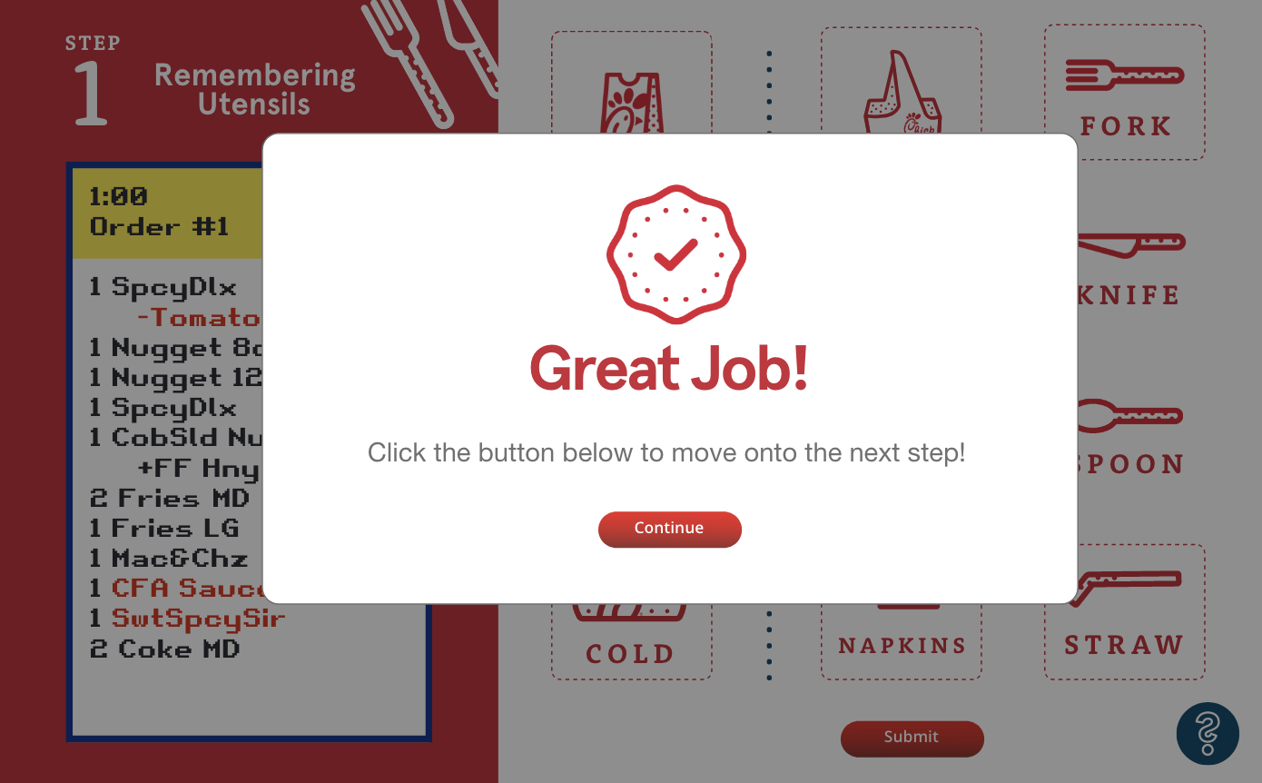 Chick-fil-A approached my employer CD2 Learning (now FACTS) with the need for an interactive way to get onboarding employees familiar with various procedures and protocols before coming on-site.